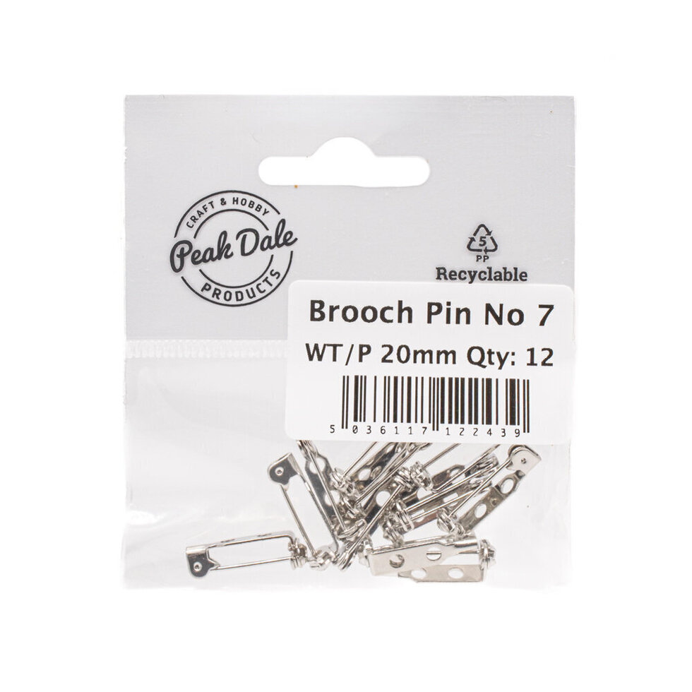 Brooch Pin No 7 White Tin Plated 20mm Pack of 12 Jewellery Making