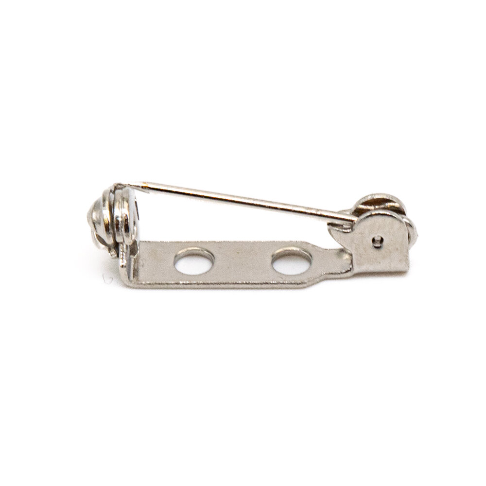 A pin suitable to make your own badges by adhering or stitching the back of the pin to your own artwork. Suitable for use with polymer clay, friendly plastic, salt dough and fabric embellishments. Size: 20mm x 5mm with 2 holes in the back plate. White tin plated, nickel free. Pack of 12.