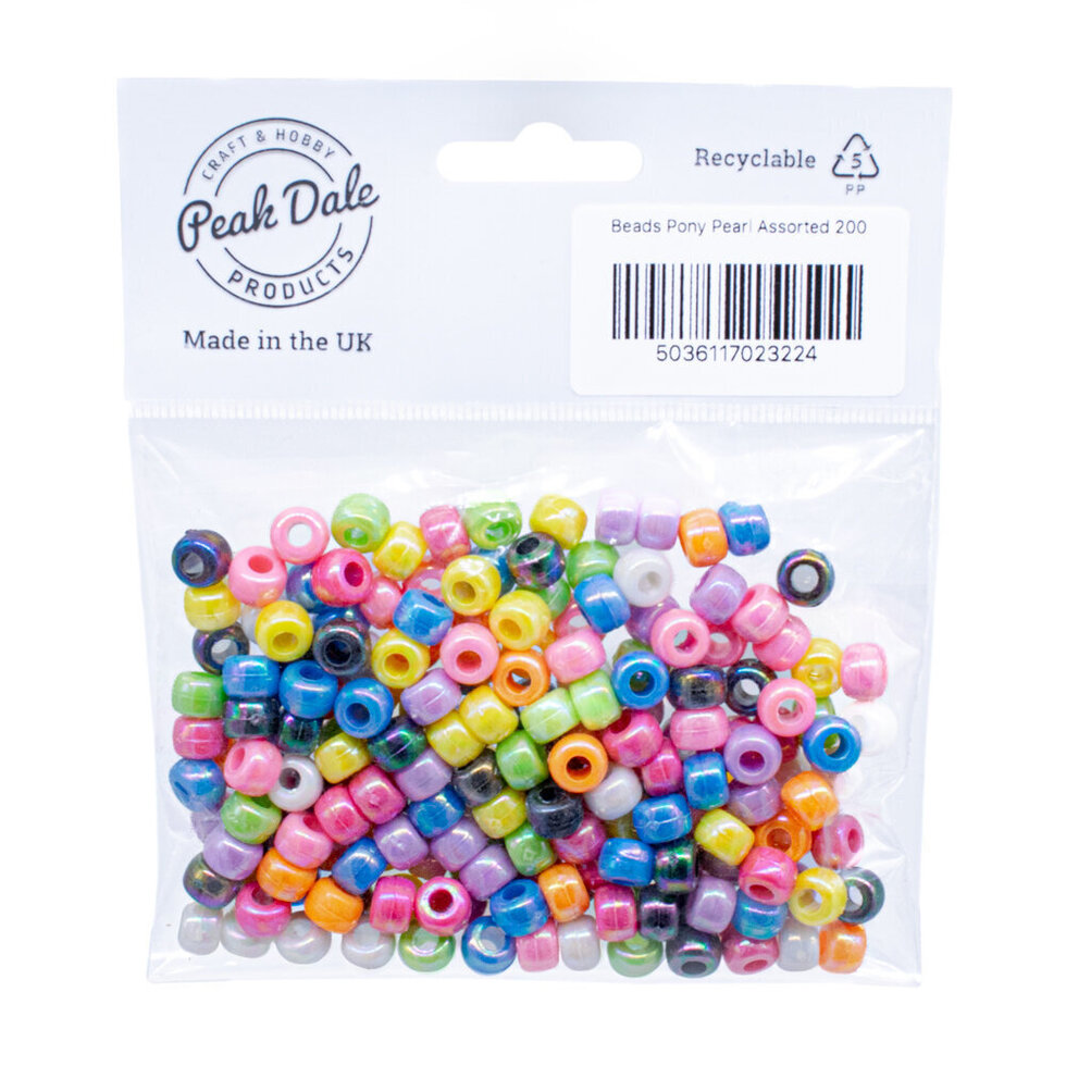 Quality pearl pony beads in assorted colours. For use in crafts, hair and haberdashery.