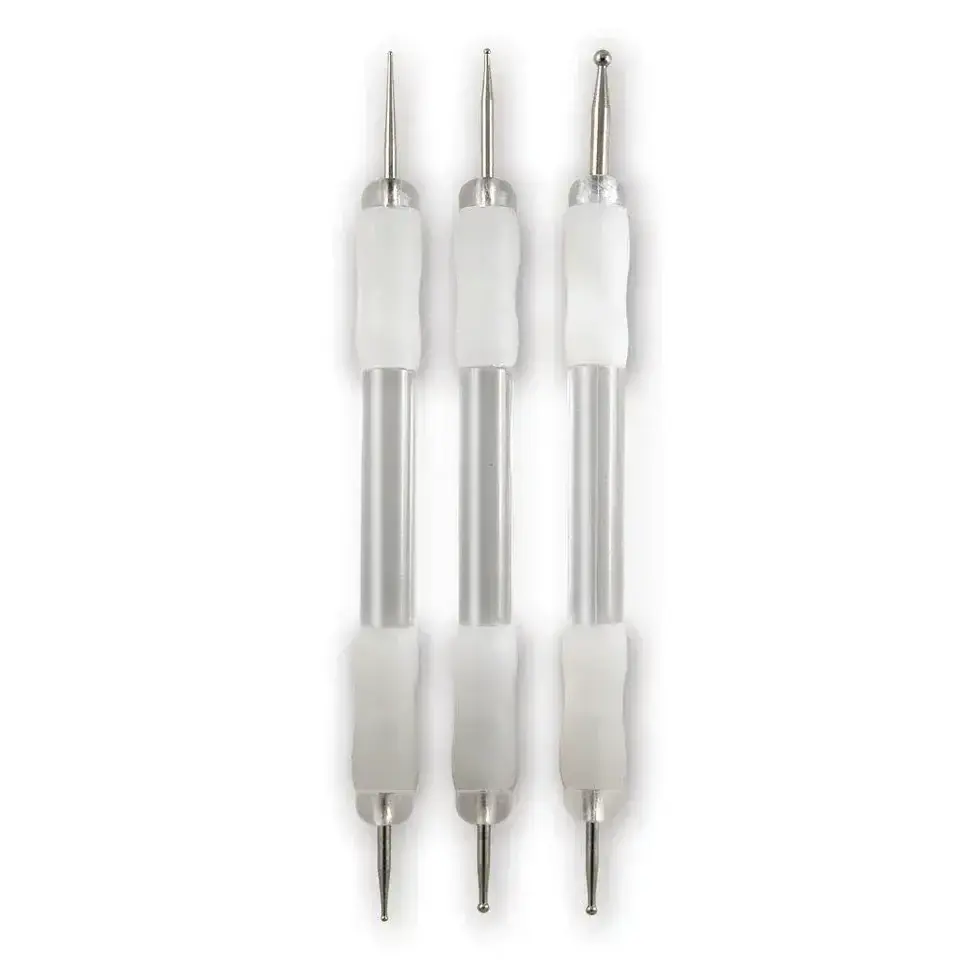 Embossing tools with Soft Grip Handles with a variety of small ball ends. Suitable for paper, card, thin metal, etc. Set of 3 double ended tools.