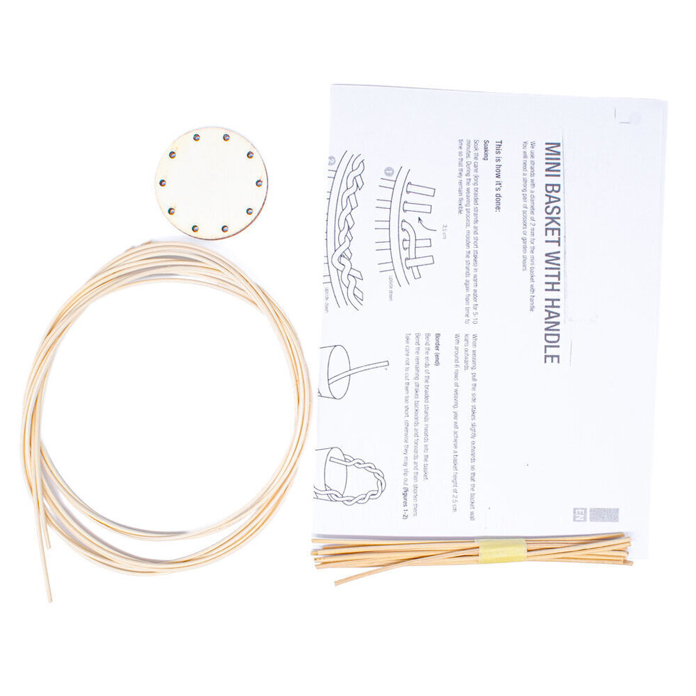 Create a charming miniature basket while learning the basics of traditional basket weaving with this Basketry Kit Mini Basket with Handle. This small-scale project guides you through making a delicate handled basket, perfect as a decorative piece or for holding small items.