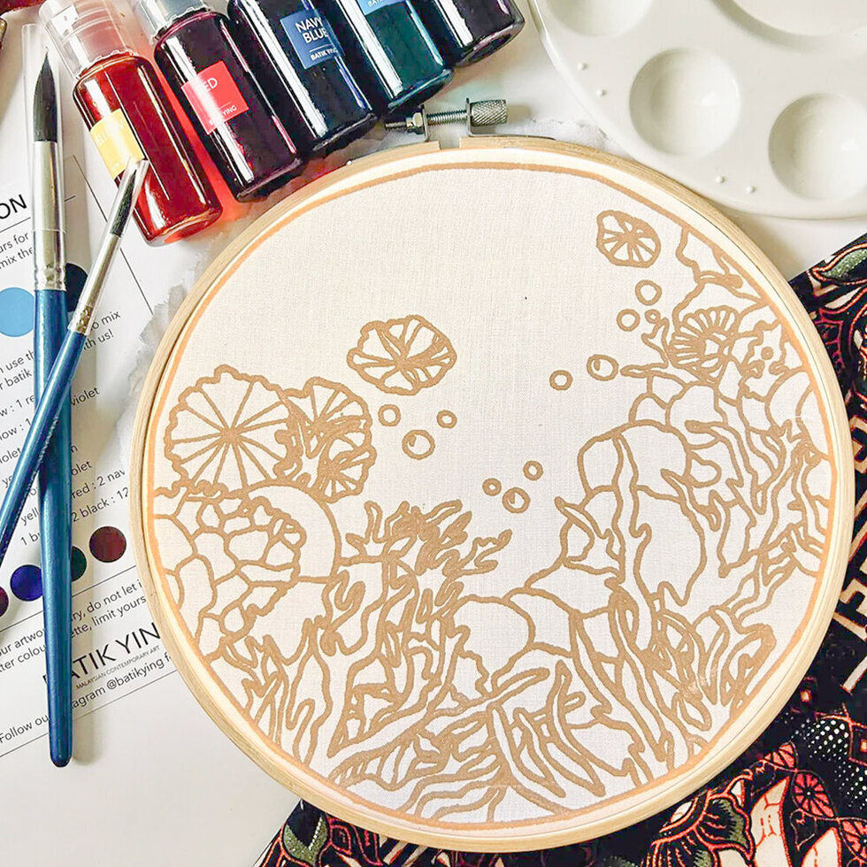 - 1 x Pre-waxed batik fabric mounted on a 20cm bamboo ring