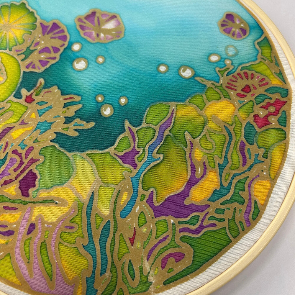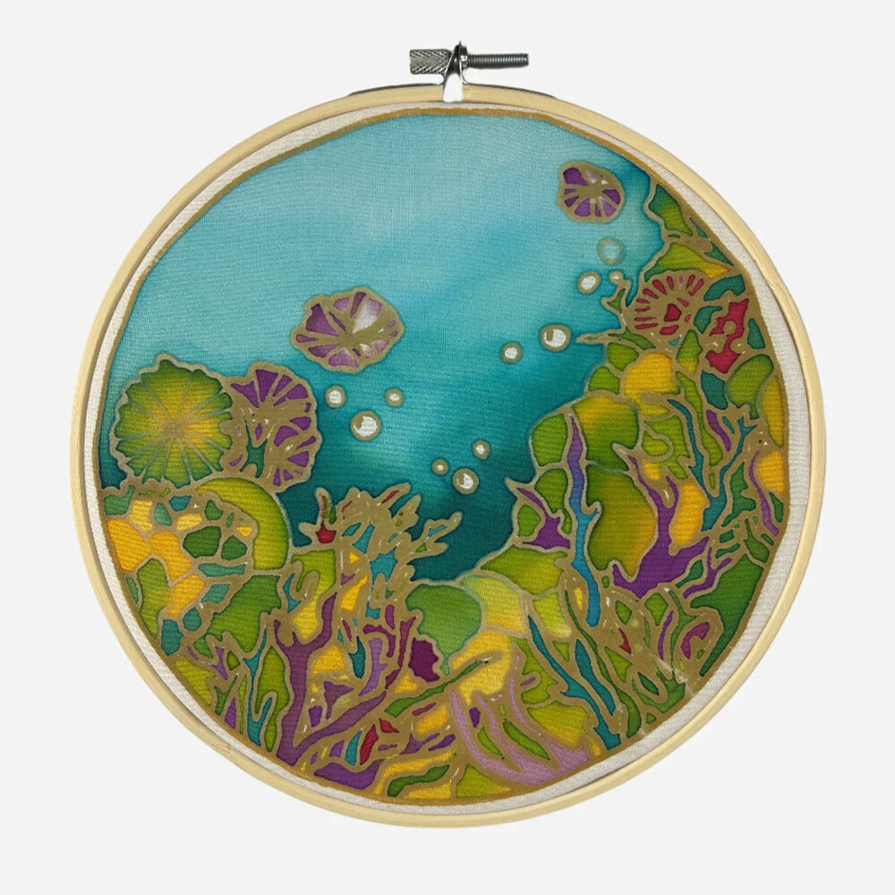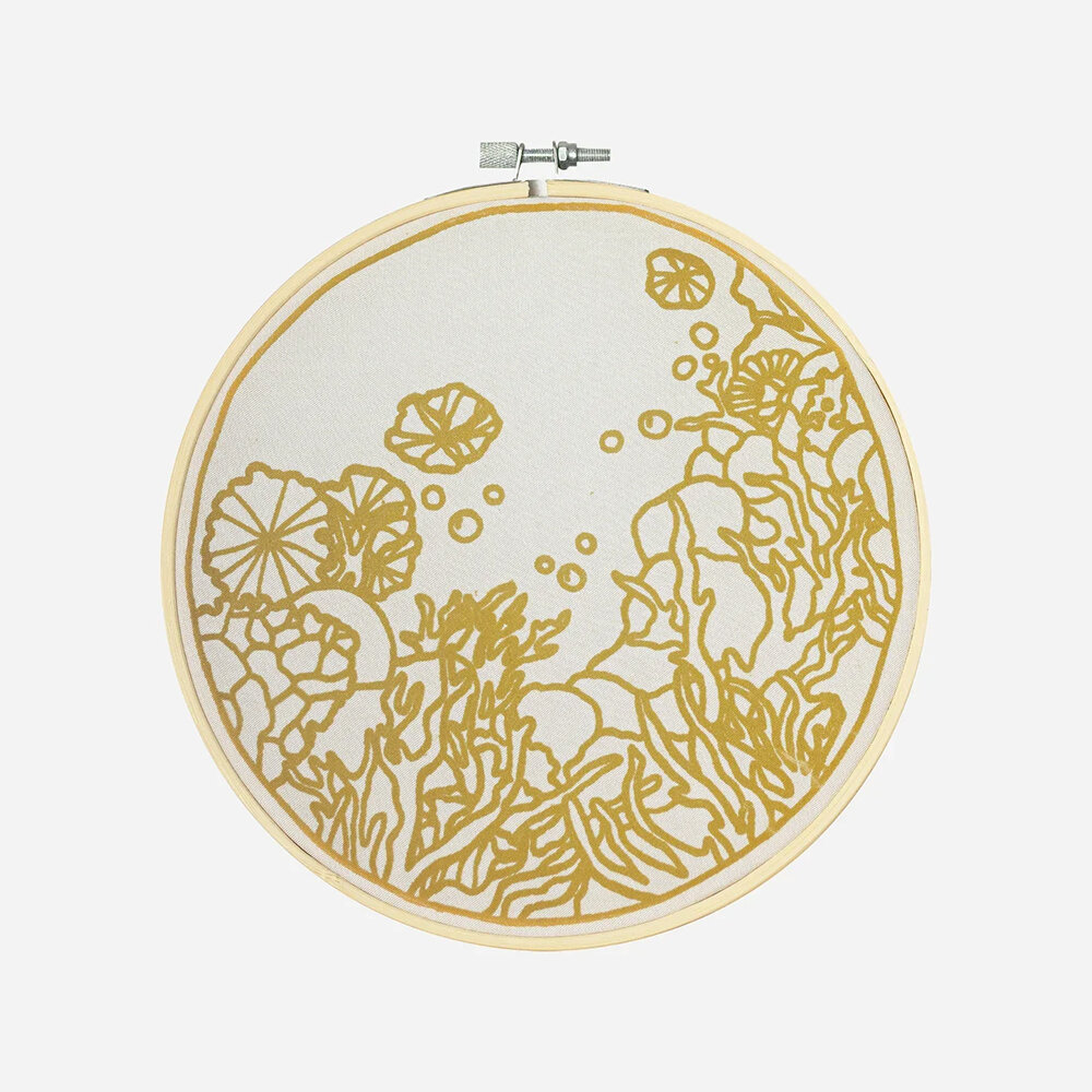 The design is mounted on a 20cm bamboo ring, making it easy to handle while working and ideal for displaying your finished piece. The flowing nature of the design makes it particularly suited to subtle colour transitions and relaxed, expressive techniques.