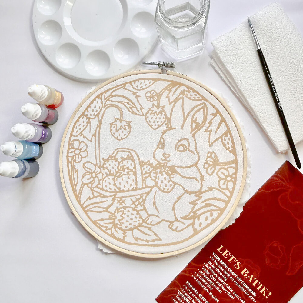 Bring vibrant colour and traditional textile art together with this charming Picnic in the Woodlands Rabbit Batik Kit. Part of a collectible set of four woodland designs, this kit features a gentle rabbit enjoying a peaceful woodland snack, creating a calm and characterful scene to bring to life with colour.
